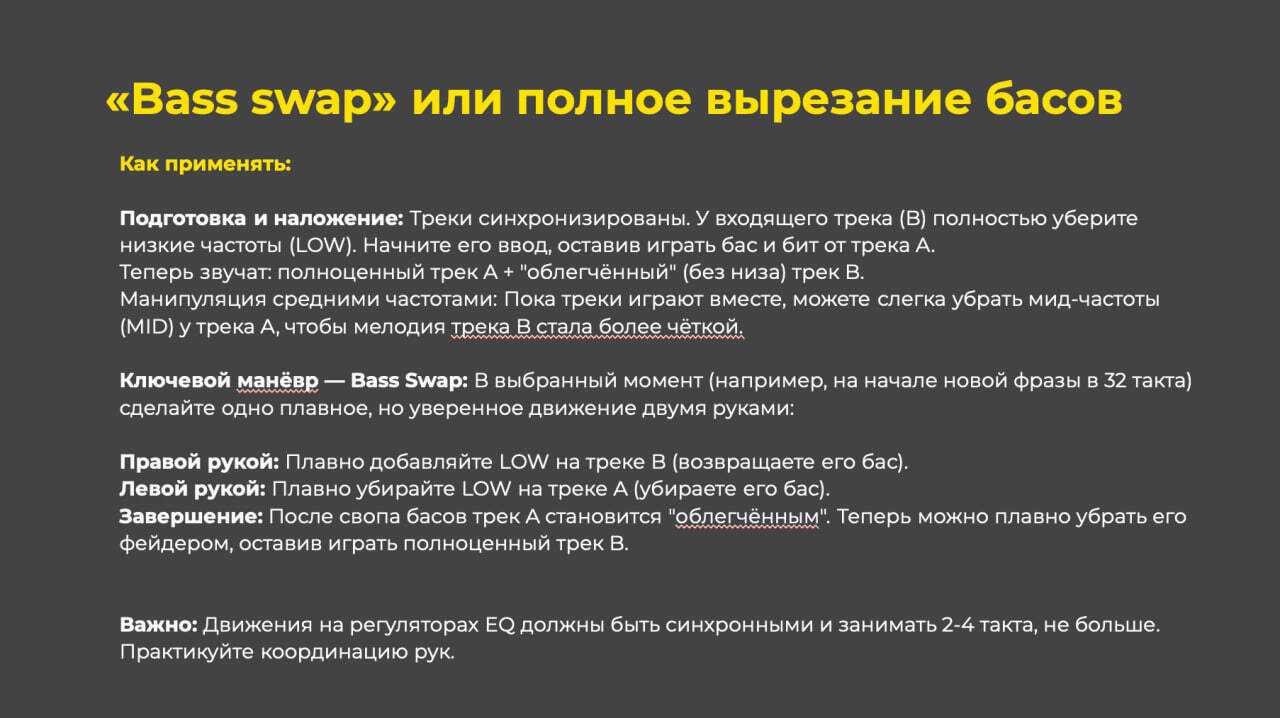«Bass swap» (полное вырезание басов)